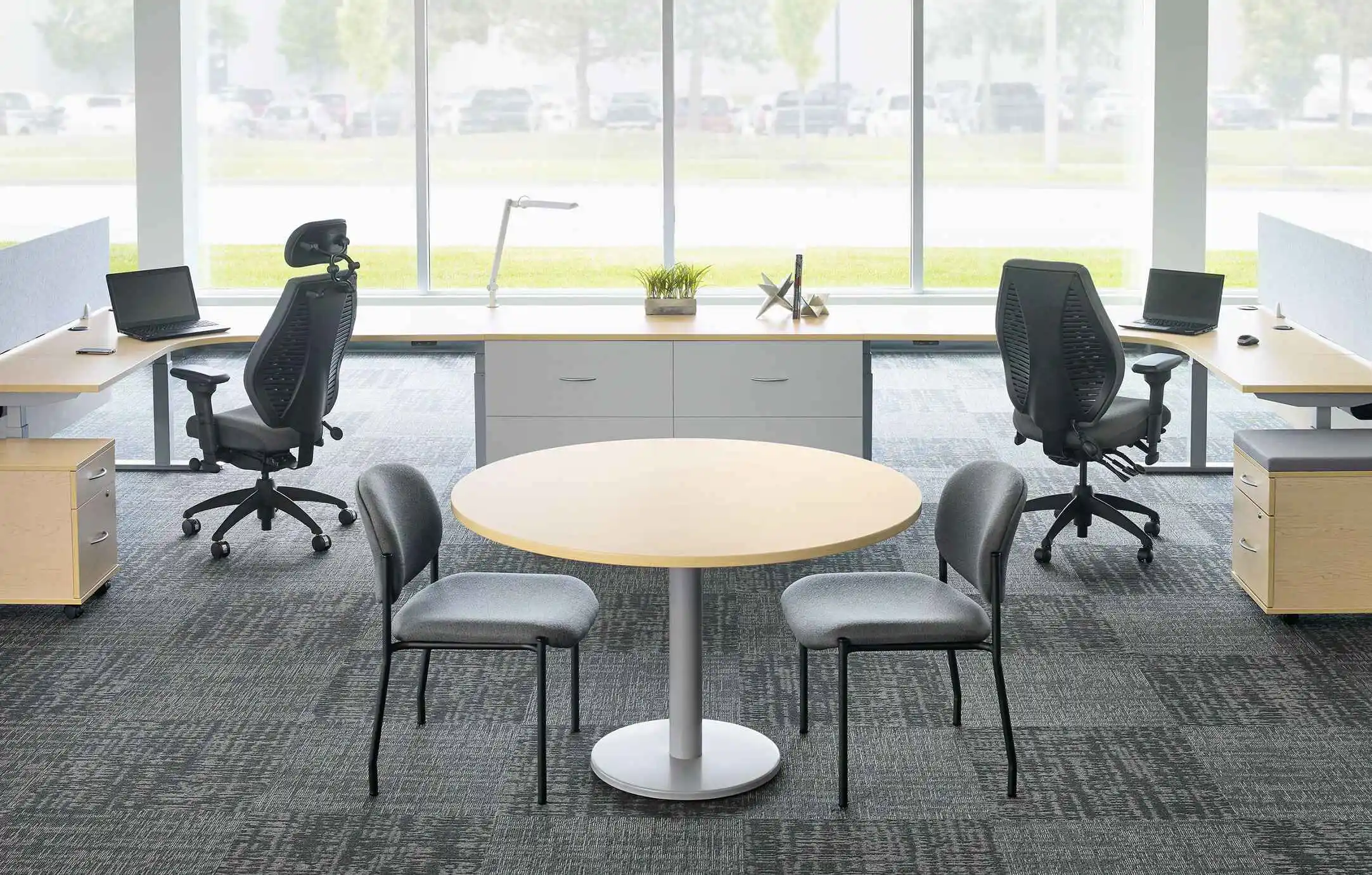 Maximize the chair’s airflow capabilities with Air Knit fabric, a durable, three-dimensional fabric that offers optimal breathability and cushioned softness. The seat pan features tailored upholstery (20″w x 19″d), combining comfort with a stylish appearance. Equipped with a 26″ glass-reinforced nylon mid-profile base and 5 dual-wheel nylon carpet casters, ensuring stability and mobility. Available in Midnight Black or Light Grey, allowing for aesthetic flexibility to match any workspace decor.