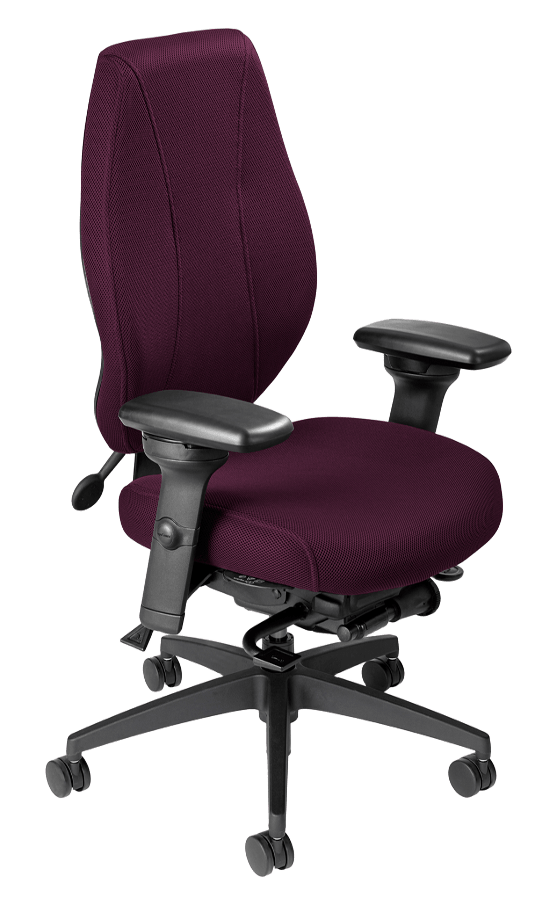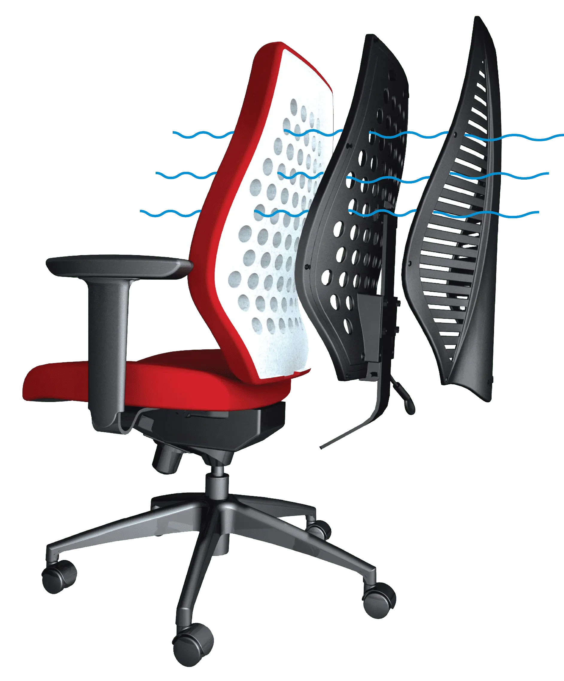 The airCentric 2 features an improved, durable molded back foam cushion that maintains its shape and support over years of continuous use. This design provides superior lateral and lumbar support. Ventilation holes in both the back and front allow for optimal airflow, ensuring a cool and comfortable seating experience. The proprietary airflow molded polyurethane foam and structure offer lasting comfort and ergonomic support.